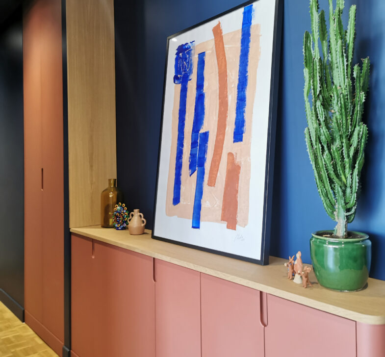 Résultat : un loft vibrant, joyeux et assumé, où chaque teinte trouve sa place et participe à une composition vivante et contemporaine.